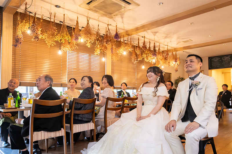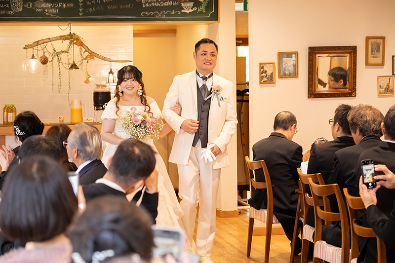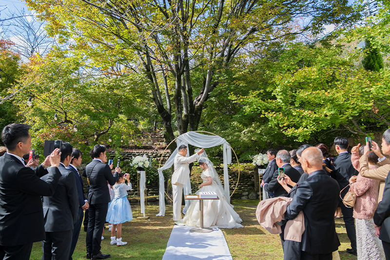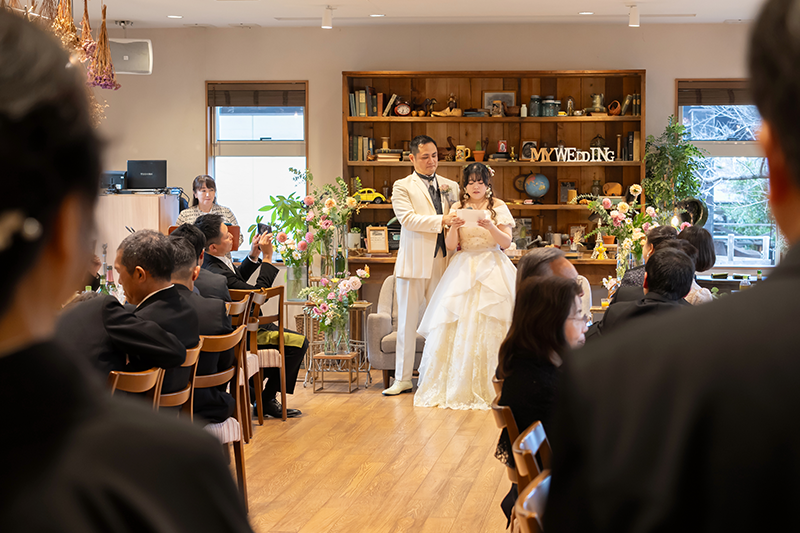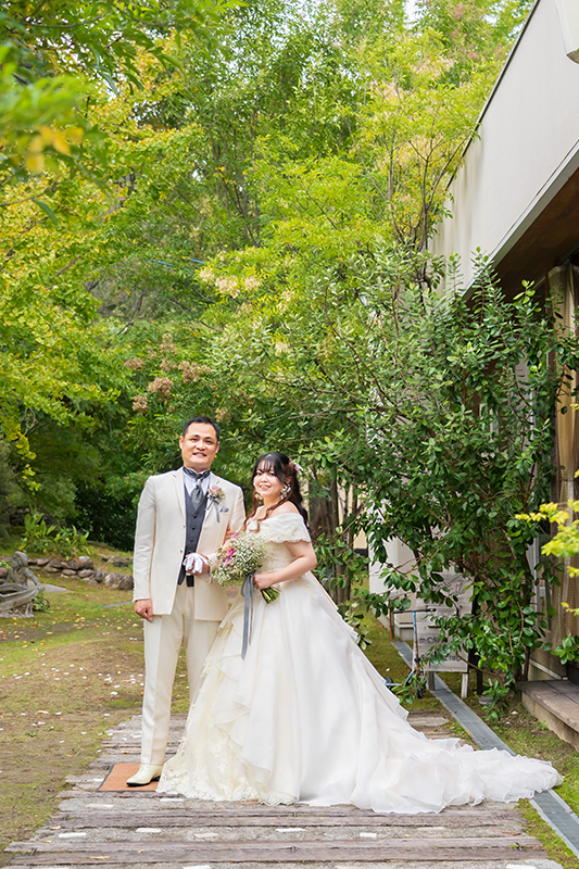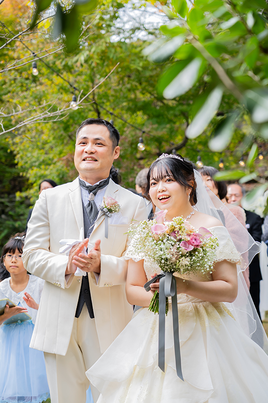 ウェディングレポート 2025.11.01 SAT A Serene Garden Wedding 支えられて迎えた特別な一日 凛とした空気の中、大切な人たちが選んでくれた一色一色の想い。透き通るガラスに刻まれた、この日だけの特別な絆。お二人らしい歩みの始まり。 おふたりからのコメント 担当プランナーのHさんには最初から最後まで大変お世話になりました。自分たちの描いていた自由で楽しい雰囲気の挙式を執り行う ことができました。カメラ担当の方も撮りたいポーズをたくさん撮ってくださり嬉しかったです。皆が笑顔で楽しい時間を過ごしており、あっという間の結婚式でした。これも当日まで支えてくださったスタッフの皆さんのおかげです。本当にありがとうございました。 オリジナリティーあふれる人前式からアットホームなパーティー。温かいお二人の人柄が伝わる和やかな一日でしたね。素敵なお二人の担当をさせていただけて幸せでした。末永くお幸せに! 次の記事 |レポート一覧| 前の記事 WEDDING REPORT 2026.02.14 SAT Our Special Day: Filled with Gratitude 感謝を紡ぐ一日 詳細を見る 2025.12.21 SUN A Day of Love, Laughter, and Light 大切な想いとともに 詳細を見る 2025.11.29 SAT Warm Hearts & Relaxed Vibes 笑顔がほどける結婚式 詳細を見る 2025.11.01 SAT A Serene Garden Wedding 支えられて迎えた特別な一日 詳細を見る 2025.09.14 SUN Overflowing with Warm Smiles 家族で過ごすやさしい時間 詳細を見る 2025.06.08 SUN Moments of Love, Moments of Peace 愛されるおふたりと笑顔が広がるウェディング 詳細を見る 2025.05.11 SUN Sacred Ceremony & Relaxed Celebration 厳かな神前挙式とリラックスパーティー 詳細を見る ウェディングレポート