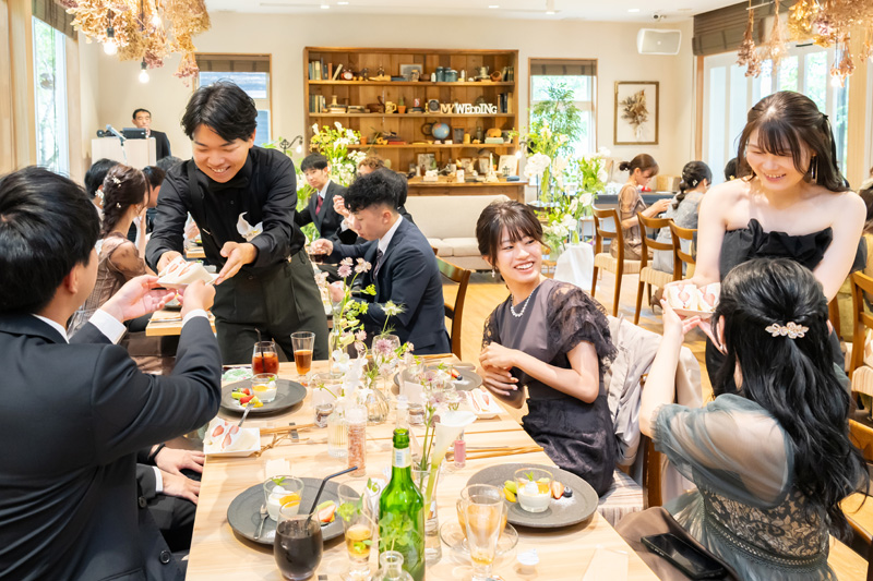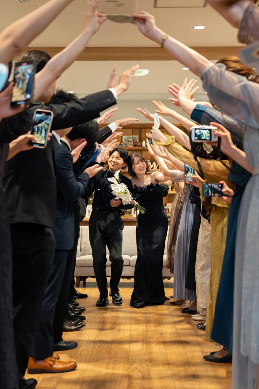ウェディングレポート 2025.05.11 SUN Sacred Ceremony &Relaxed Celebration 厳かな神前挙式とリラックスパーティー おふたりが表現したかったこと、大切に思っていることを、打ち合わせを重ねながら、ひとつずつ丁寧に形にした結婚式。心地よい空気とやさしい時間が流れ、ゲストも笑顔に包まれていました。 おふたりからのコメント 結婚式について前向きではなかった私達に対して、たくさんの提案をしていただき、楽しいひとときを過ごせました。一番の決め手は、担当の方の明るさ、提案力だったので、一緒に結婚式を作りあげることができよかったです。また、式がスムーズに進むようなスタッフの方のサポートも手厚く、安心感をもって式を迎える事ができて良かったです。 新緑に囲まれた花嫁行列。厳かな神前式からのご披露、華やかな披露宴。お二人の思い出のフルーツサンドでファーストバイトなど、お二人らしいパーティでしたね。 担当させて頂き幸せでした。末永くお幸せに! 次の記事 |レポート一覧| 前の記事 WEDDING REPORT 2025.06.08 SUN Moments of Love, Moments of Peace 愛されるおふたりと笑顔が広がるウェディング 詳細を見る 2025.05.11 SUN Sacred Ceremony & Relaxed Celebration 厳かな神前挙式とリラックスパーティー 詳細を見る 2025.04.27 SUN Warm and Relaxed Day 笑顔があふれるアットホームウェディング 詳細を見る 2025.04.12 SAT Warm Smiles in a Garden Wedding 青空の下で叶えた 心温まるセレモニー 詳細を見る 2025.04.06 SUN Heart-warming time 思わず涙が流れる胸が熱くなる時間 詳細を見る 2025.02.08 SAT Full of smiles 笑顔があふれるなごやかな教会式 詳細を見る 2024.12.22 SUN Create a wedding together 「やりたい」を形にする 詳細を見る ウェディングレポート