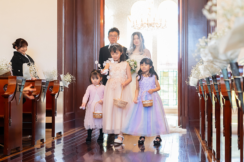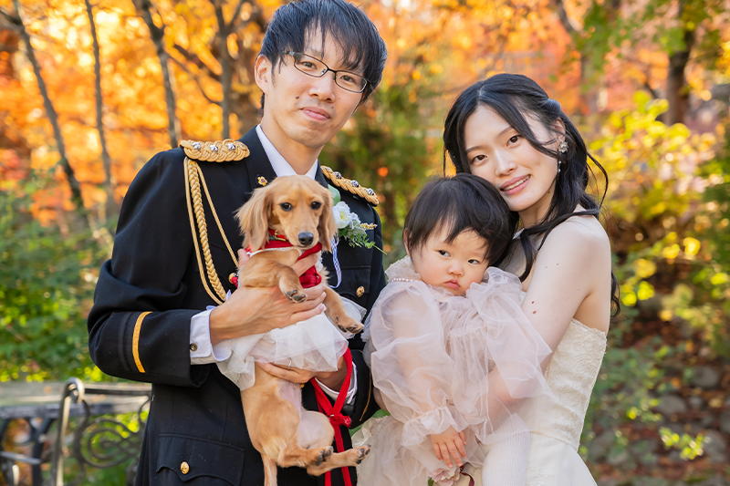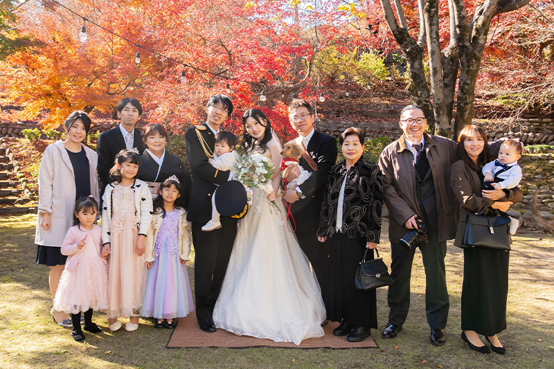 ウェディングレポート 2025.11.29 SAT Warm Hearts & Relaxed Vibes 笑顔がほどける結婚式 大切な愛犬の登場に緩む表情。色づく季節に溶け合うゲストの笑顔が、最高にリラックスした結婚式を彩って。家族の温もりが、心に深く染み渡る記念の日。 おふたりからのコメント 当初は入籍してから日が経っており、もう子どももいるため、フォト婚で終わろうと思っていたけれど、両家の親の希望もあり、家族婚をサクラテーブルでさせていただきました。結婚式を終えた後は、結婚式をしてよかったなと心から思いました。今までお世話になった両親、兄弟にも守られ認めてもらう幸せを感じることができ本当に良かったです。 お子さまゲストの皆様や愛犬にも守られて執り行われた人前式。紅葉のきれいな庭でのフォトタイム。にぎやかなパーティー。どのシーンも温かくて素敵でした。またいつでも遊びに来てくださいね。 次の記事 |レポート一覧| 前の記事 WEDDING REPORT 2026.02.14 SAT Our Special Day: Filled with Gratitude 感謝を紡ぐ一日 詳細を見る 2025.12.21 SUN A Day of Love, Laughter, and Light 大切な想いとともに 詳細を見る 2025.11.29 SAT Warm Hearts & Relaxed Vibes 笑顔がほどける結婚式 詳細を見る 2025.11.01 SAT A Serene Garden Wedding 支えられて迎えた特別な一日 詳細を見る 2025.09.14 SUN Overflowing with Warm Smiles 家族で過ごすやさしい時間 詳細を見る 2025.06.08 SUN Moments of Love, Moments of Peace 愛されるおふたりと笑顔が広がるウェディング 詳細を見る 2025.05.11 SUN Sacred Ceremony & Relaxed Celebration 厳かな神前挙式とリラックスパーティー 詳細を見る ウェディングレポート
